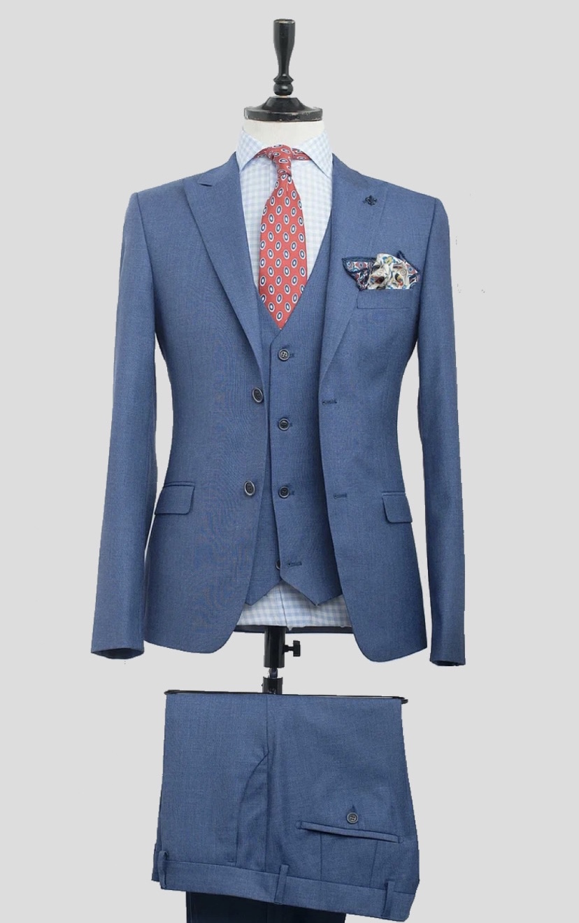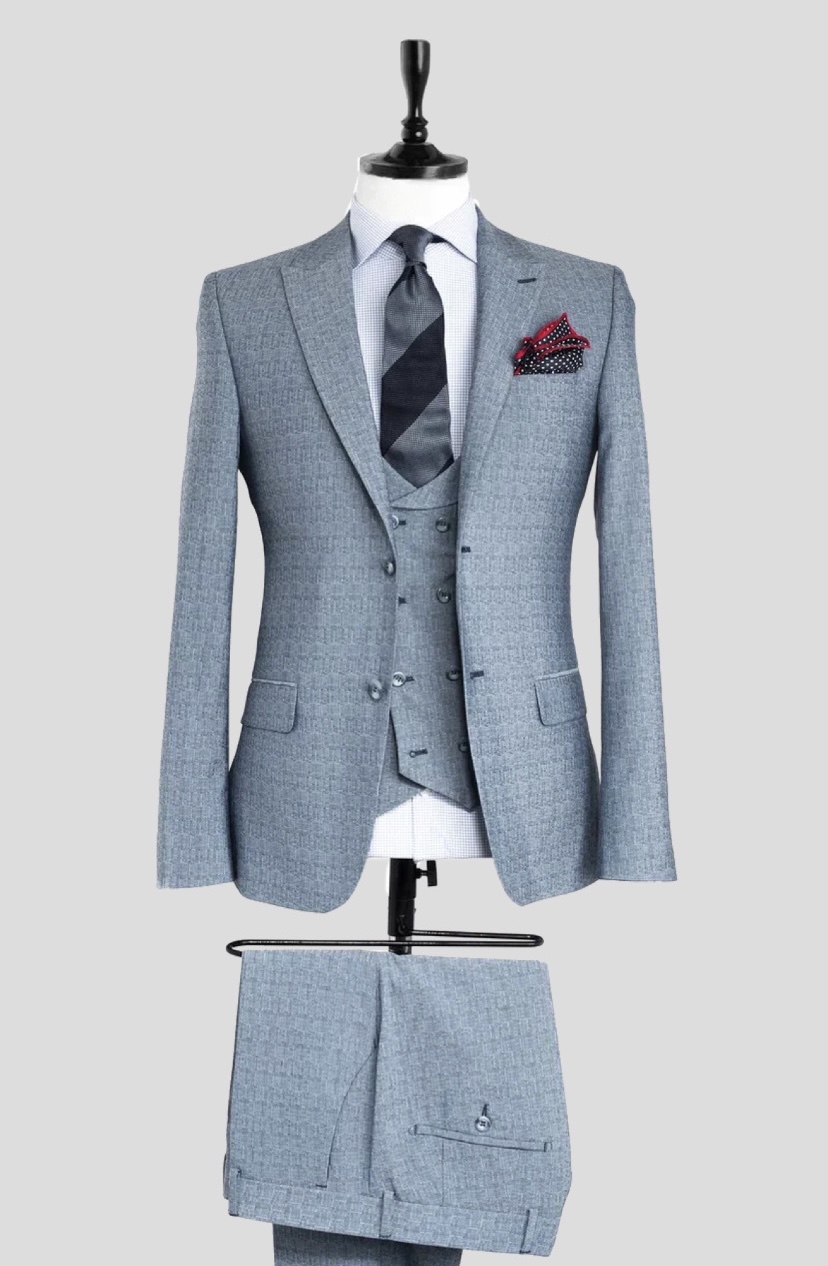 Мужской костюм тройка небесно-голубого цвета. Красивая фактура делает эту модель очень стильной и незаурядной.
