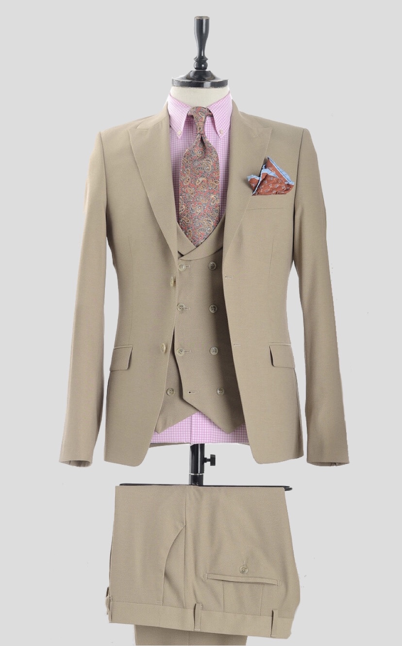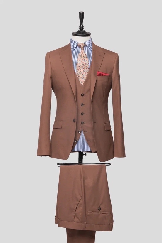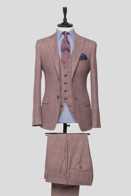 Мужской костюм тройка необычного пудрового оттенка. Красивая фактура делает эту модель очень стильной и незаурядной.