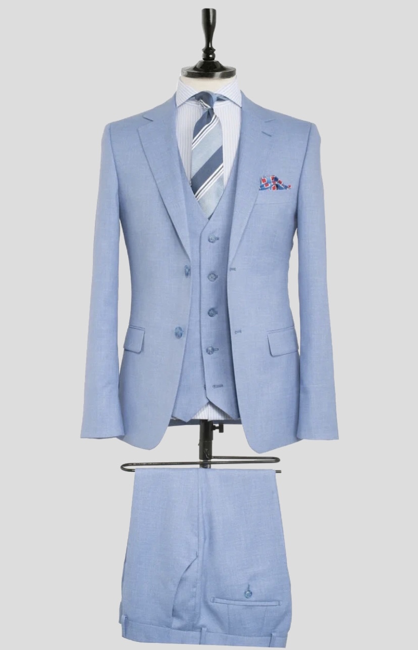 Мужской костюм тройка небесно-голубого цвета. Идеальное решение для образа жениха.