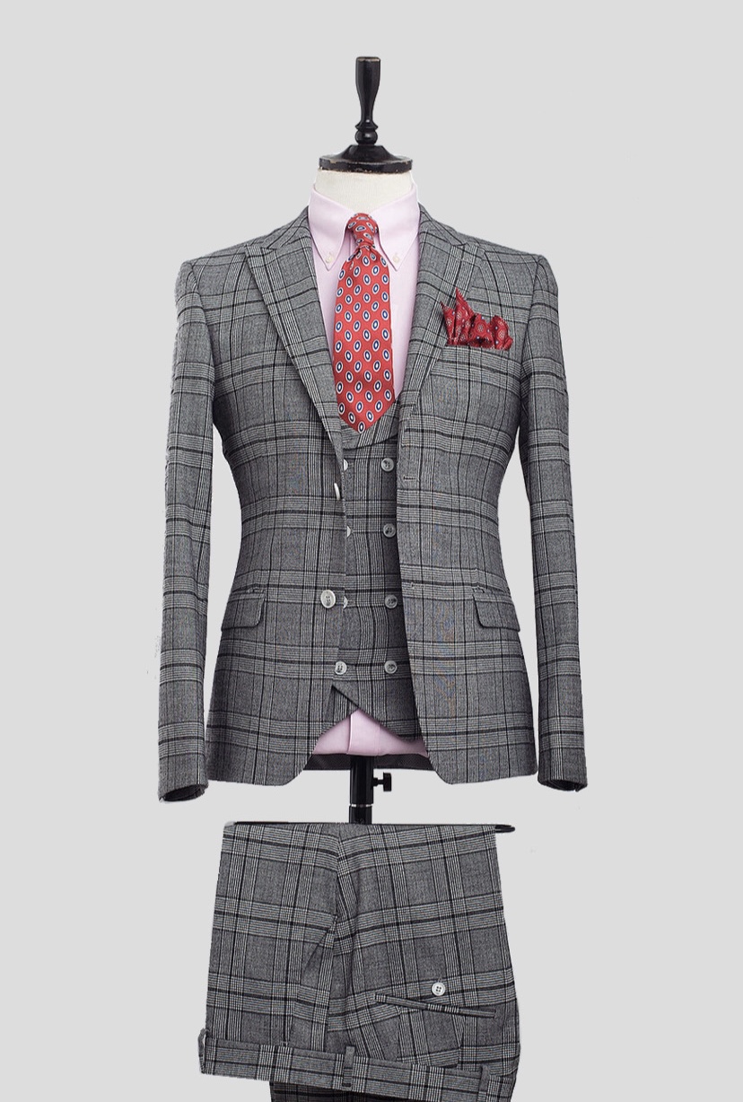 Мужской костюм тройка серого цвета в крупный рапорт черной клетки. Невероятно стильная модель.