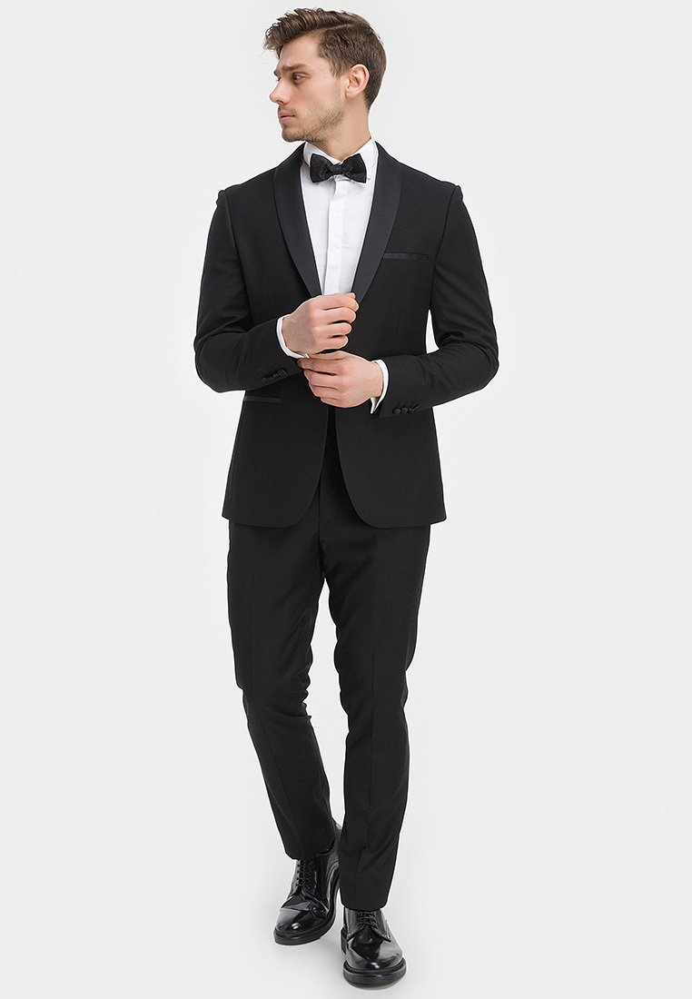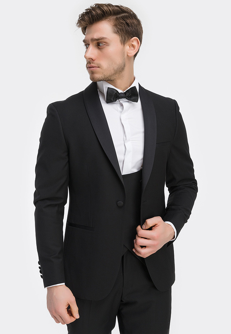 Мужской костюм тройка имеет прямой лацкан в сочетании с классической однорядной жилеткой.